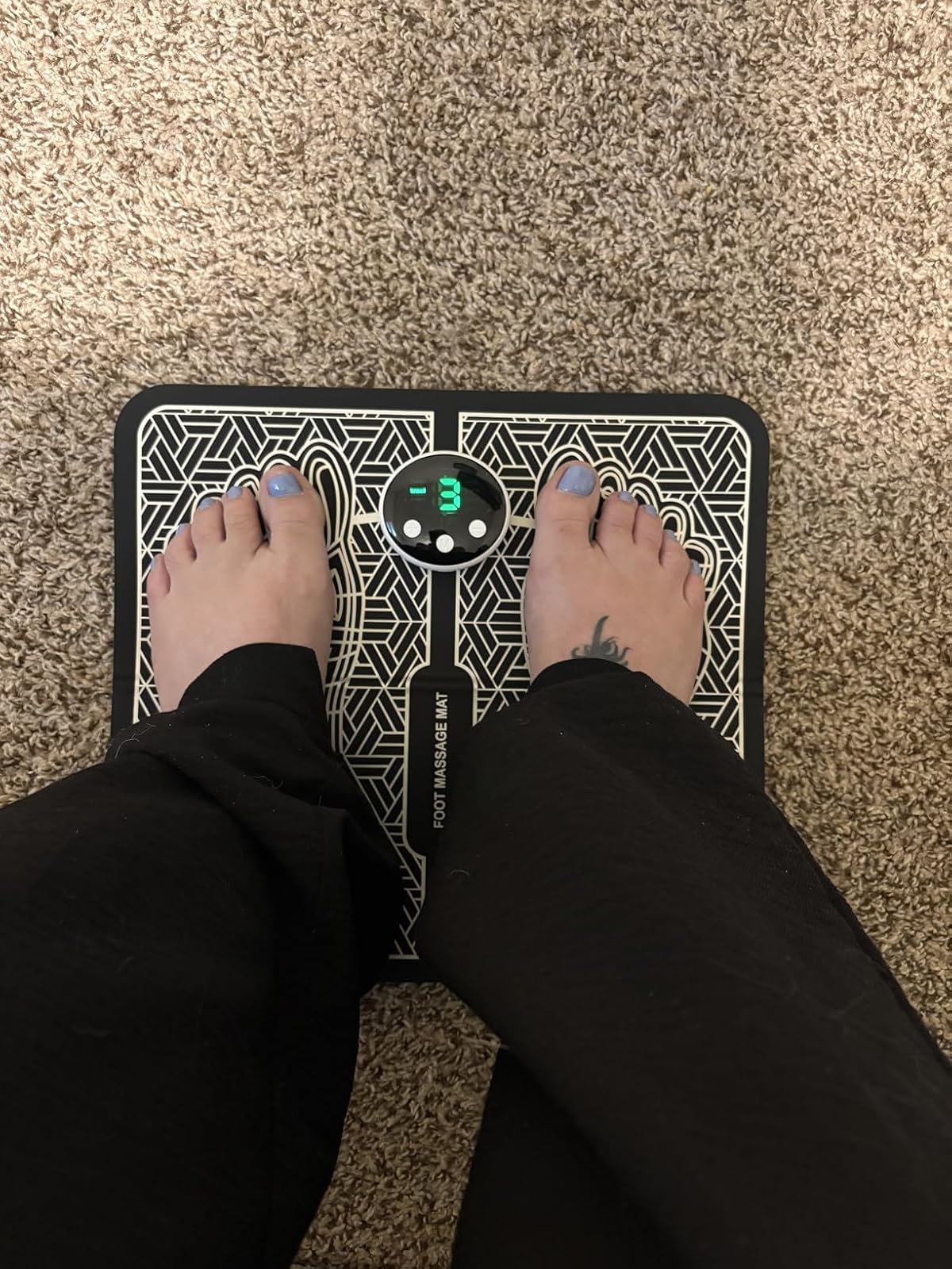 I’ve been using this EMS foot massager for over a week now and I’m really impressed. It’s easy to use, lightweight, and has multiple intensity settings that allow me to customize the massage. The stimulation feels very relaxing and helps relieve foot tension after a long day. The LCD screen and remote control make it super convenient, and I can already feel the difference in my neuropathy, circulation and muscle relaxation. It has a long battery life is well worth it. The quality is superb. It’s highly effective for overall health and well being, the functionality gets a 10 for me!!